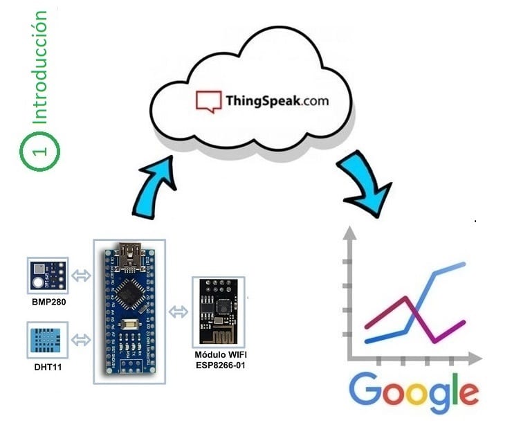 En esta serie vamos a construir y programa una estación meteorología autónoma con Arduino + ESP8266-01 + ThingsPeak.com utilizando una batería y una placa solar. El objetivo es que el sistema sea capaz de estar en funcionamiento todos los días del año de forma autónoma, enviando datos una vez cada 5 minutos. El sistema hará