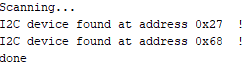La dirección por defecto de todos los sensores MPU6050 que he utilizado a sido siempre 0x68, pero puede pasar que la dirección de vuestro sensor sea diferente. Para saber exactamente cual es la dirección podéis utilizar el siguiente código, simplemente cableáis y alimentáis el sensor como hemos visto mas arriba y ejecutáis el código. En el monitor serie aparecerá la dirección de todos los periféricos I2C que tengáis conectados.